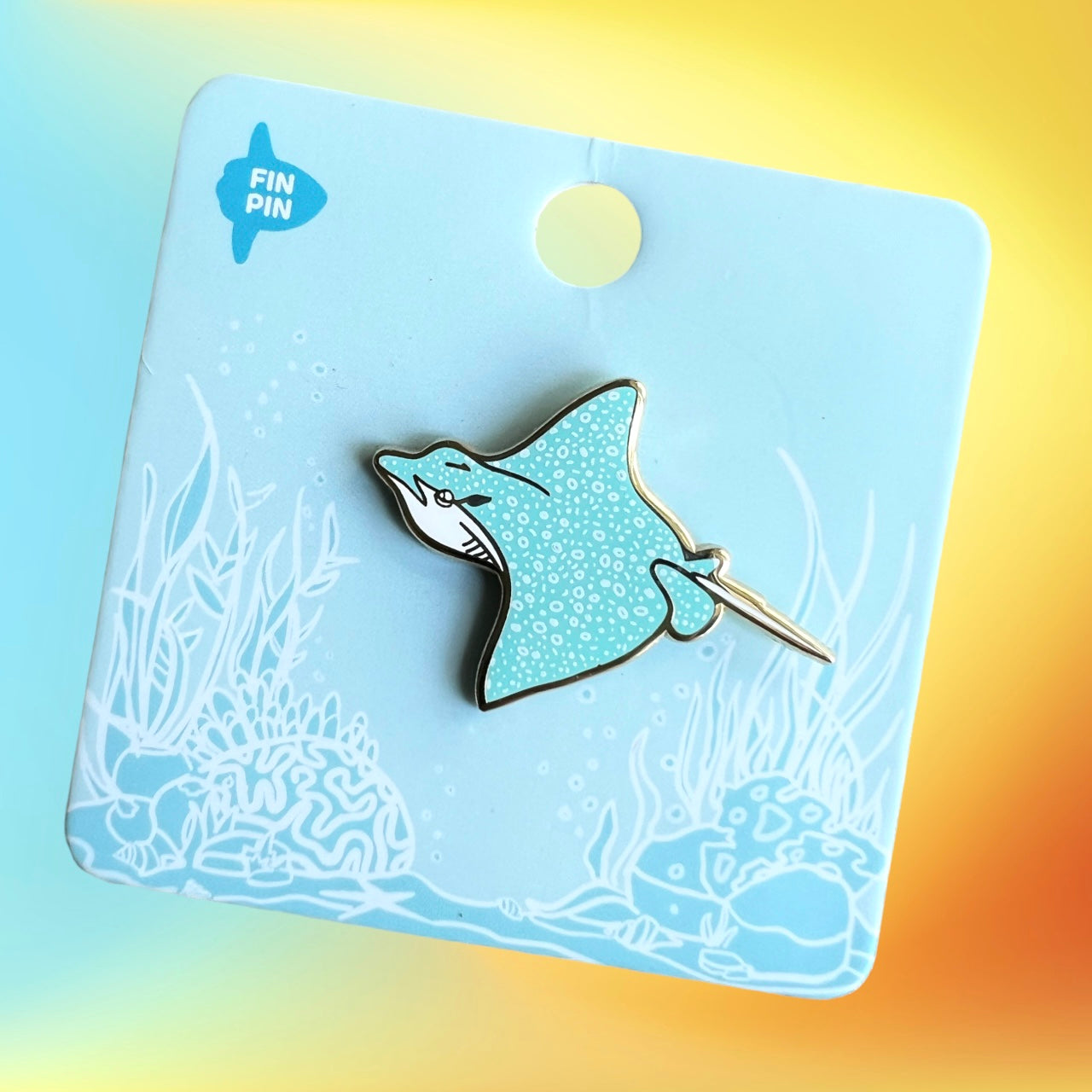 Aquamarine spotted eagle ray enamel pin • Patreon exclusive