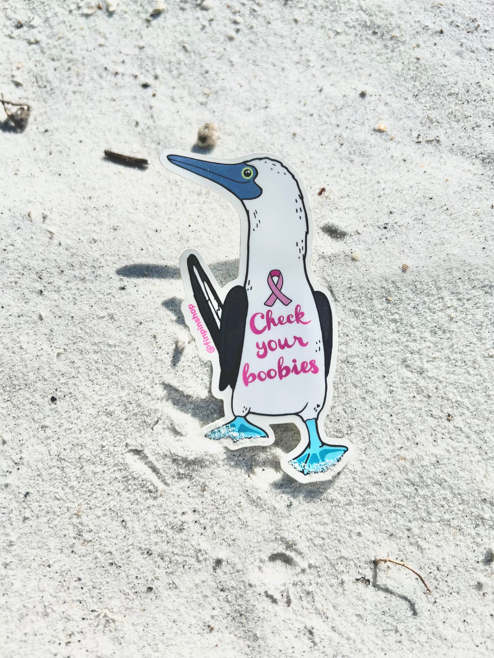 Check Your Boobies - Blue Footed Booby Breast Cancer Vinyl Sticker • donation item