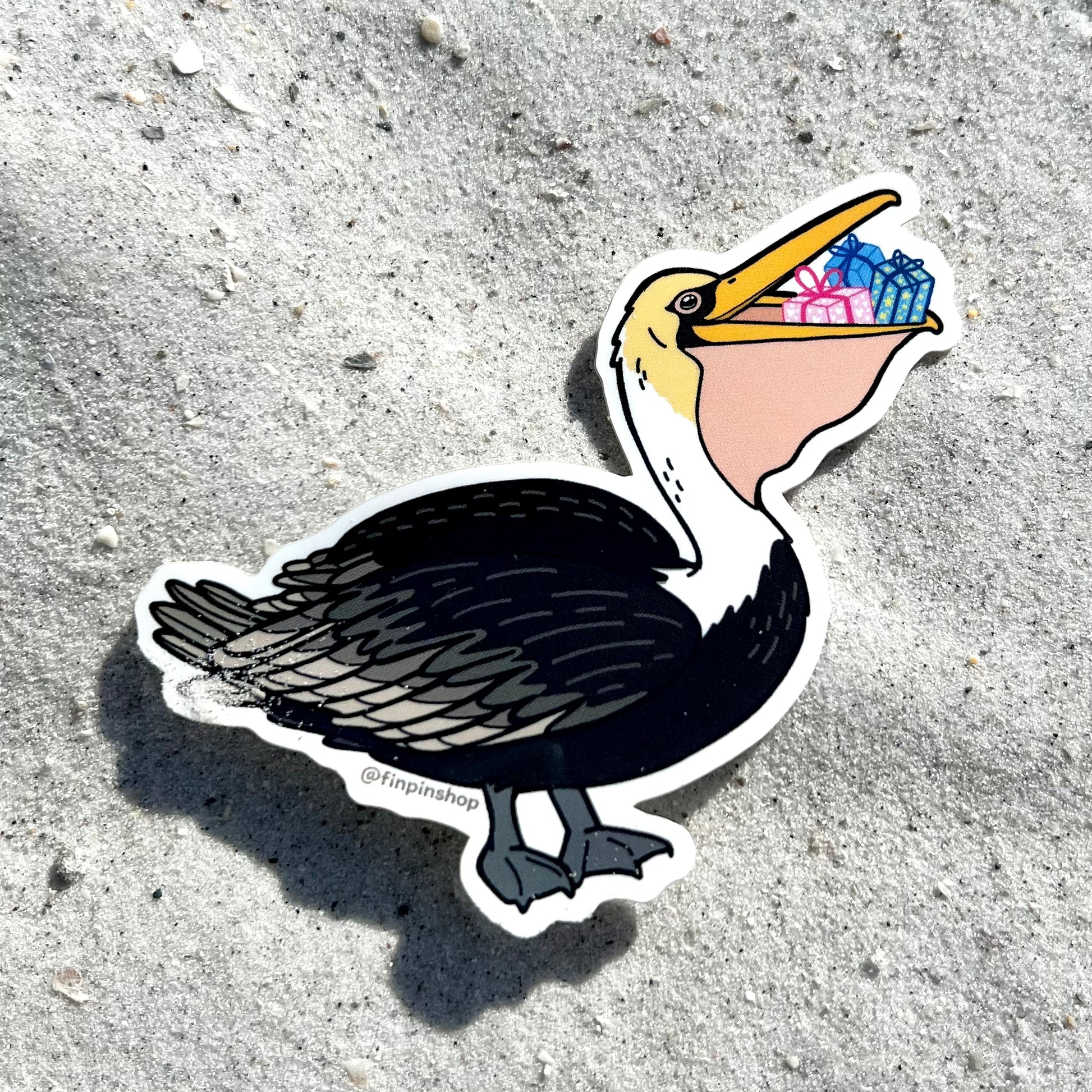 December 2022 exclusive! This happy little gulf pelican who is ready to deliver some presents to his fins! He’s pretty happy about his wrapping job too. 🎁