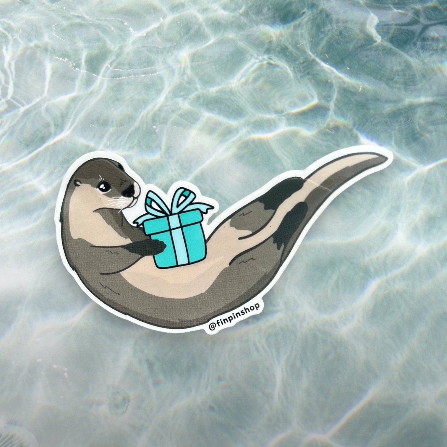 Meet our river otter sticker for the holidays! This cutie comes bearing a gift for a spe-SHELL loved one ❤️