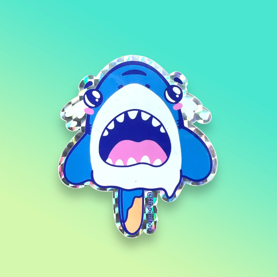This 2023 Patreon-exclusive crybaby shark sticker features a glitter holographic effect background!