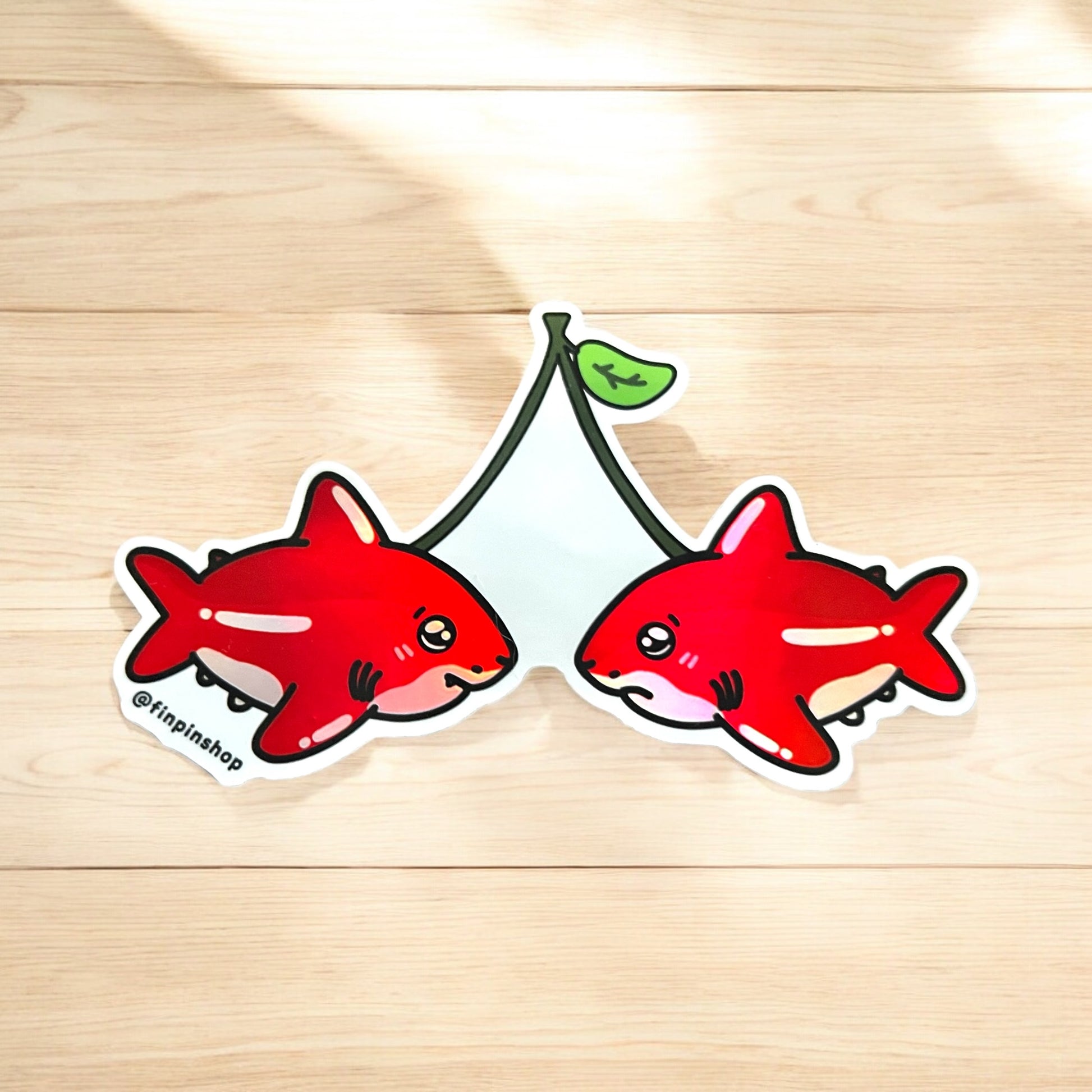 Check out this sweet treat—cherry sharks! These two little cherry babes are holographic so when the sun hits they are full of color 🌈🍒🦈