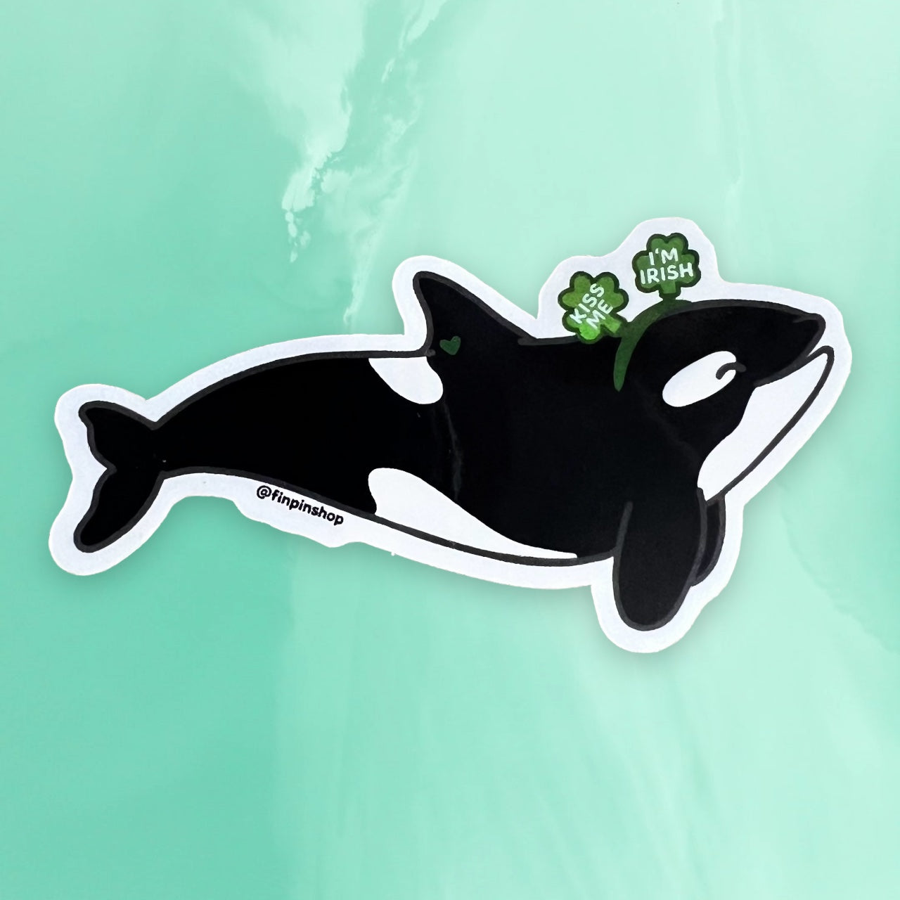 Shellebrate St Patrick’s Day with our 3” inch orca sticker for March 2023 Patreon.