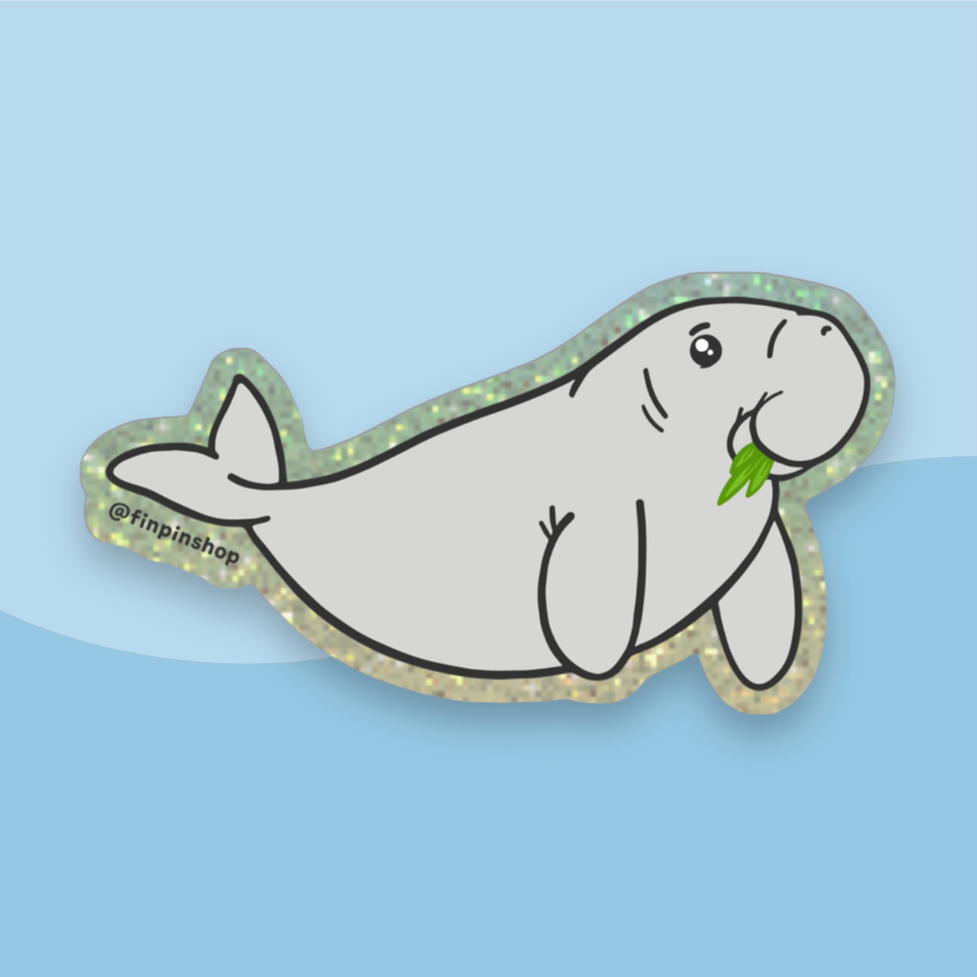 Dugong with a pixie dust background effect! Who doesn’t love a dugong and sparkles?✨ This little herbivore is chomping on some sea grass…mmm anyone else suddenly want some greens? 🥬